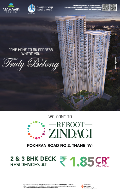 Mahavir Spring Thane project, By Damji Shamji Shah Group, is located at prime spot, Pokharan Road 2 Thane West. It offers Premium 2 and 3 BHK Flats in Pokhran Road No 2 Thane, including Jodi Flats. These homes provide beautiful views of Yeoor Hills and Upvan Lake, making them a desirable choice. Best-in-class amenities like Fitness Center, swimming pool, gym, Walkin music track, Martial Arts Area, library, & much more.